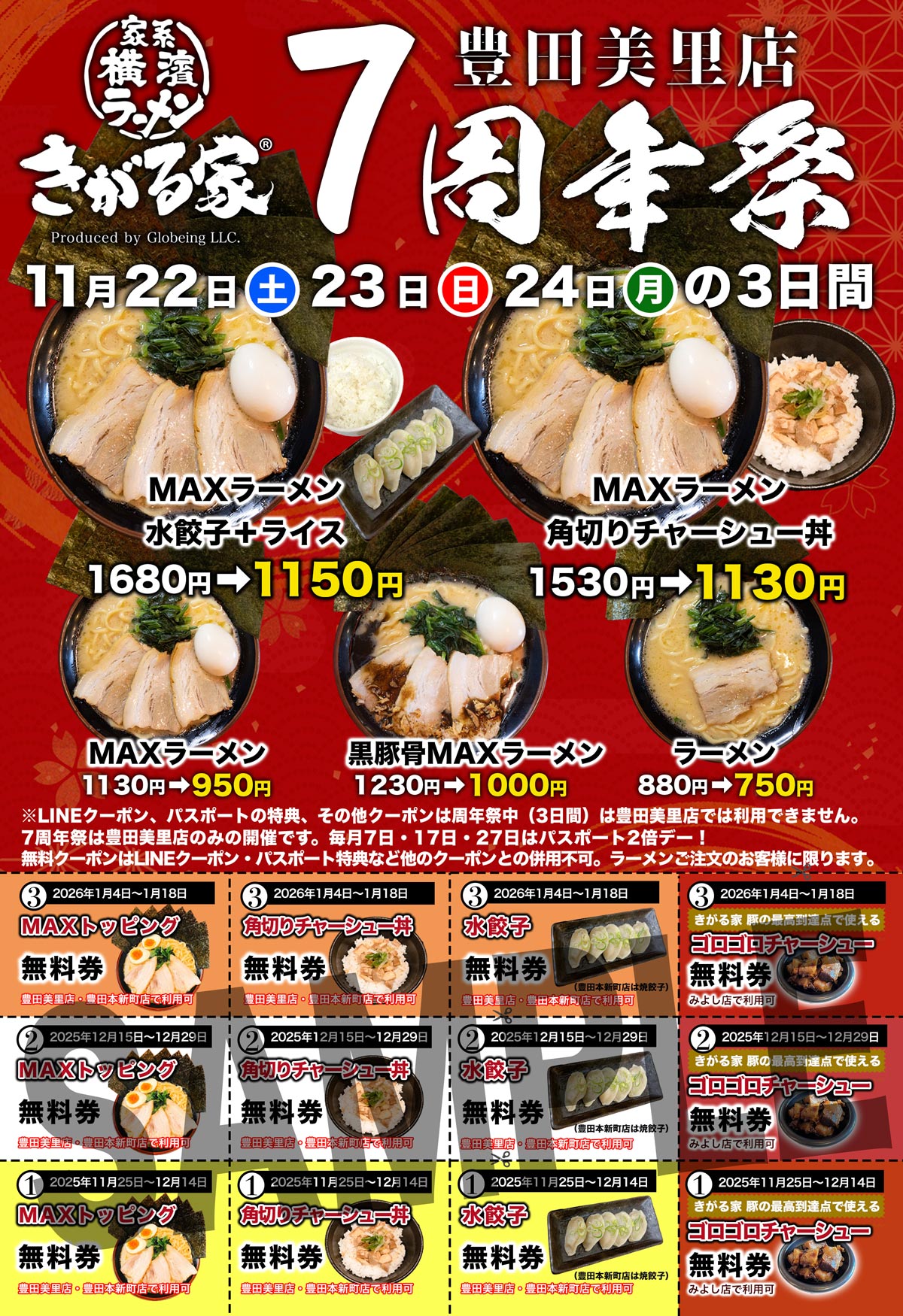 豊田美里店は皆様のおかげで7周年を迎えることができました。